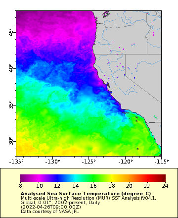 Monthly reports of recent climate conditions provided by Southwest Fisheries Science Center. Please contact Jerrold Norton (Jerrold.G.Norton at noaa.gov) for more information.