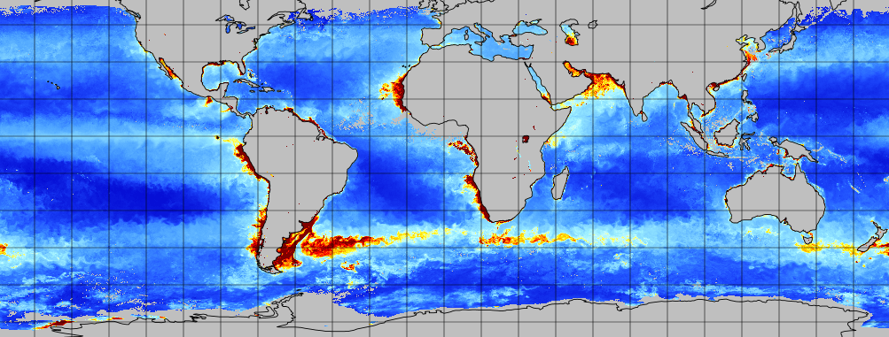 Since 2007, the only satellite product available from NOAA for monitoring primary productivity has been the global product developed by the NOAA CoastWatch West Coast Node. The product is based on the Vertically Generalized Production Model (VPGM) described by Behrenfeld and Falkowski (1997) and relies on data from the MODIS sensor on the Aqua satellite to drive the algorithm. The MODIS Aqua sensor will be decommissioned soon, effectively ending this legacy MODIS-based primary productivity product. New primary productivity algorithms that use the latest satellite sensors are under development, but are unlikely to be in production before MODIS Aqua is retired.