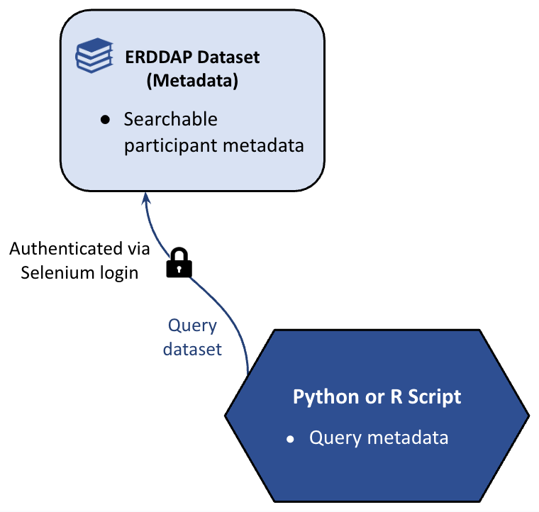 This workflow leverages existing ERDDAP infrastructure to support secure, automated access to protected datasets without requiring new backend systems. By integrating Selenium with NOAA’s Google-based authentication, it maintains identity-managed security while avoiding the storage of passwords in code. The approach also demonstrates ERDDAP’s versatility, showing that it can function not only as a public data catalog, but as a structured metadata registry and controlled asset distribution platform.